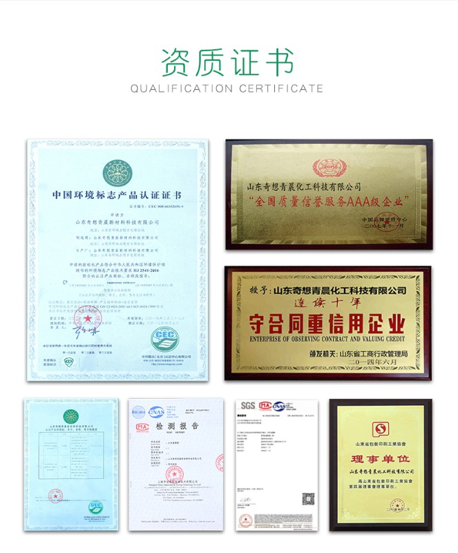 山东奇想青晨新材料科技有限公司,坐落于山东好汉的故乡--菏泽郓城。公司成立于2002年,致力于水性胶粘剂的研发、制造与销售,主要服务于印刷、包装行业,产品主要包括水性干法复膜胶、水性湿法复膜胶、水性裱糊胶、水性封口胶、油性封口胶、水性软包装复合胶、水性凹印复膜胶等七大类产品。